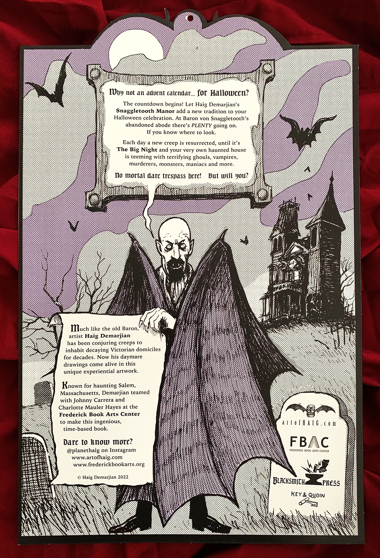 The brainchild of artist Haig Demarjian, Snaggletooth Manor is a Blacksmith Press collaboration with Johnny C. and his team in Frederick, Maryland.